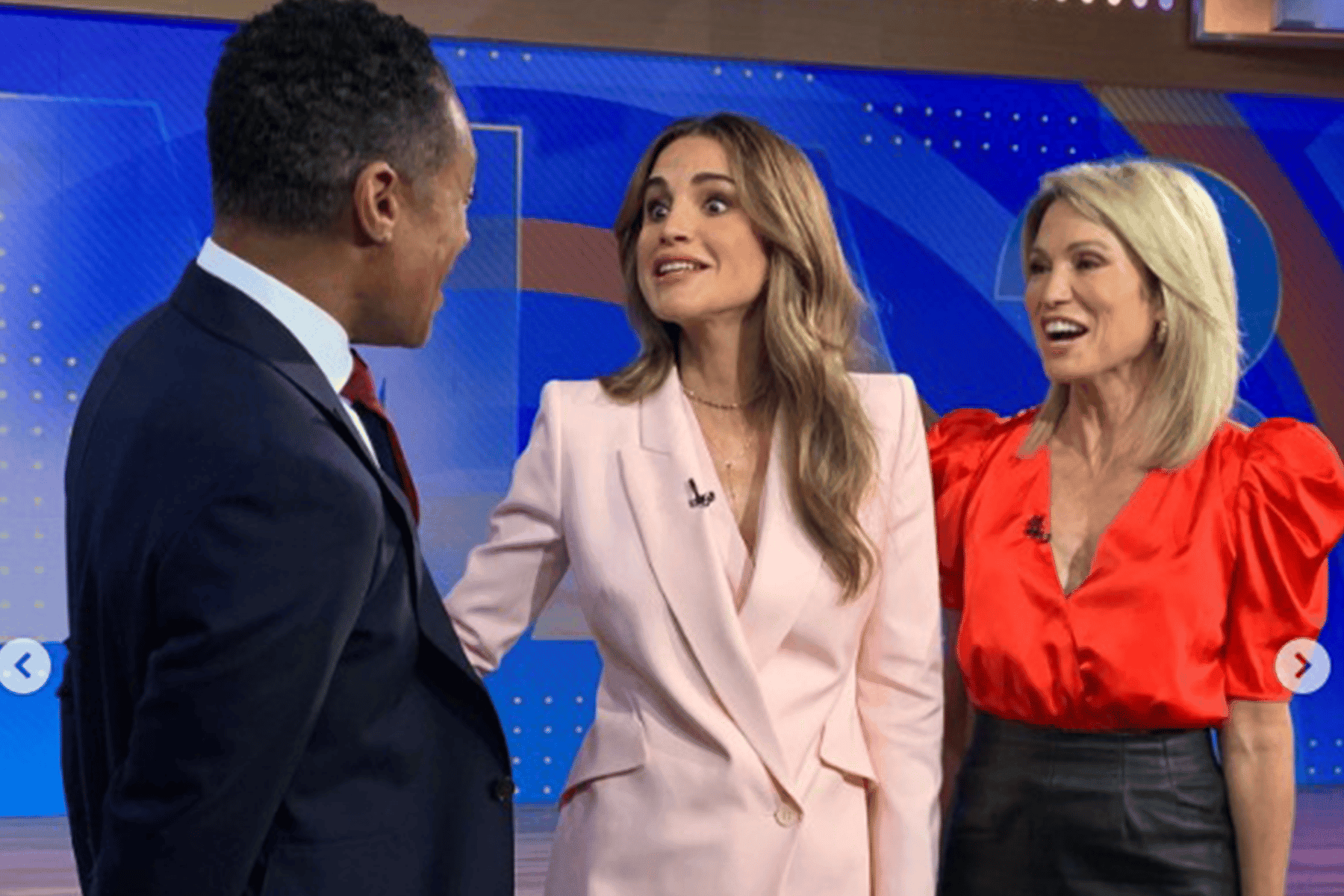 ووفقا لمجلة “هالو ماجازين” يبدو أن الملكة واصلت نكاتها بعد انتهاء البرنامج، حيث شارك تي جي هولمز عدة صور لما حدث بعد توقف الكاميرات عن الدوران، وكاد يسقط ضاحكًا بينما كانت الملكة رانيا تتحدث.