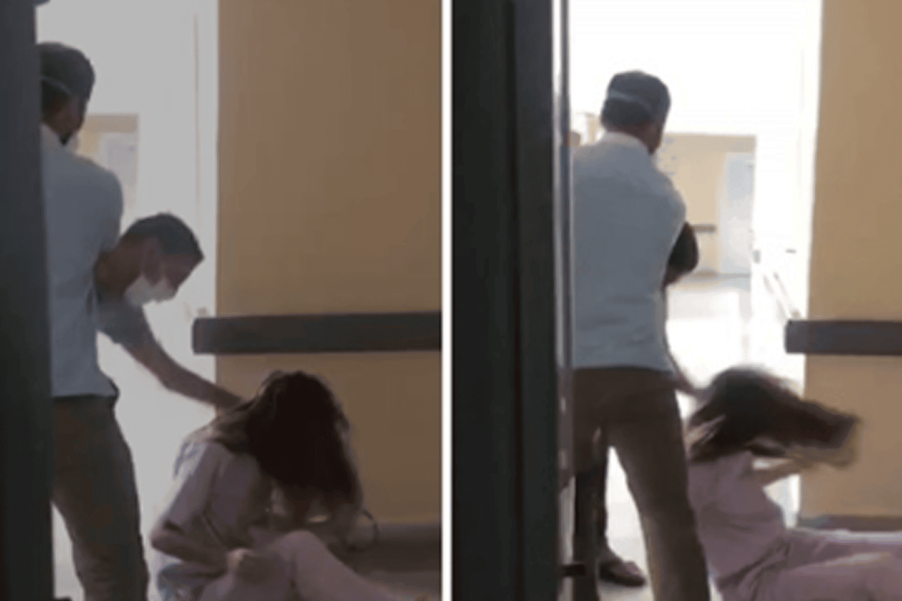 وأظهر مقطع الفيديو الذي تم العثور عليه، وتضمن الصور التي تم تداولها، سيدةً بزيّ التمريض ملقاة على الأرض ويقوم رجل بضربها، فيما يحاول آخر إيقافه.
