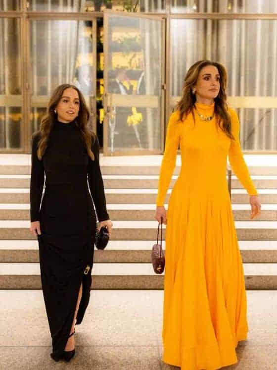 وبدت الأم وابنتها مذهلتين في فستانين طويلين من نفس الشكل، إيمان باللون الأسود ووالدتها باللون البرتقالي، وهو لون عام 2022، حيث أرادت الأميرة إيمان مرافقة والدتها إلى عشاء Caring for Women، الذي أقيم في The Pool، في نيويورك قبل أيام قليلة.