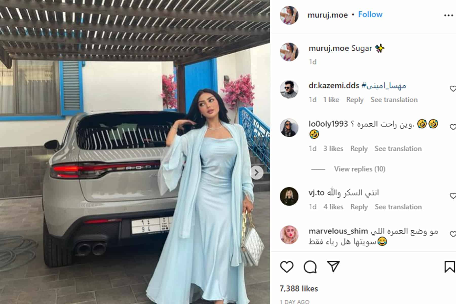 نشرت مروج الرحيلي عبر حسابها على “إنستغرام” صوراً تظهر فيها سيارتها الجديدة الفارهة، وقد كُتب على لوحتها المميزة عبارة “سكر”.