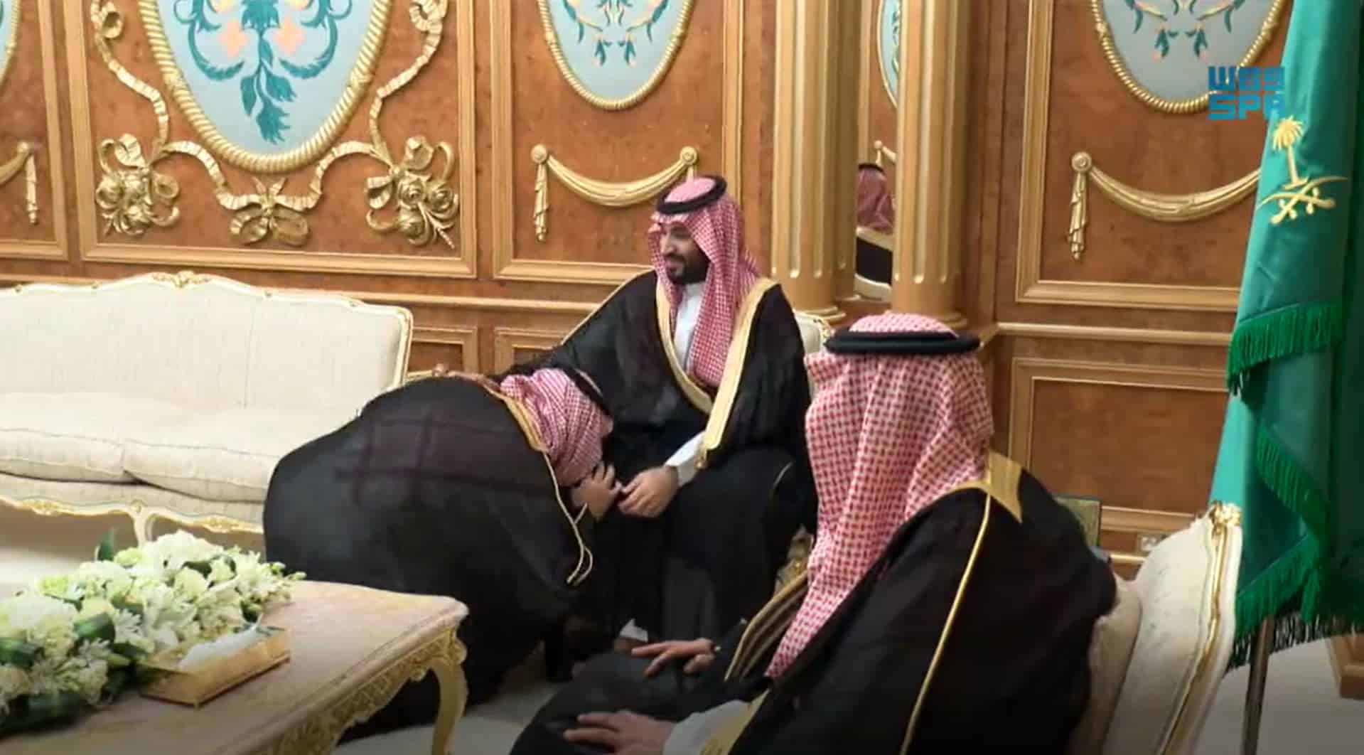 خالد بن سلمان يقبل يد وركبة شقيقه محمد