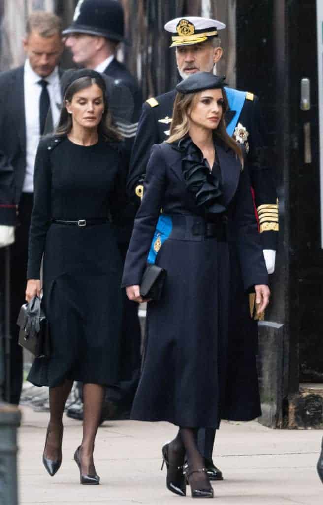 كما ارتدت زوجاً مماثلاً من العلامة التجارية لجنازة الملكة إليزابيث الثانية، في 19 سبتمبر في لندن.