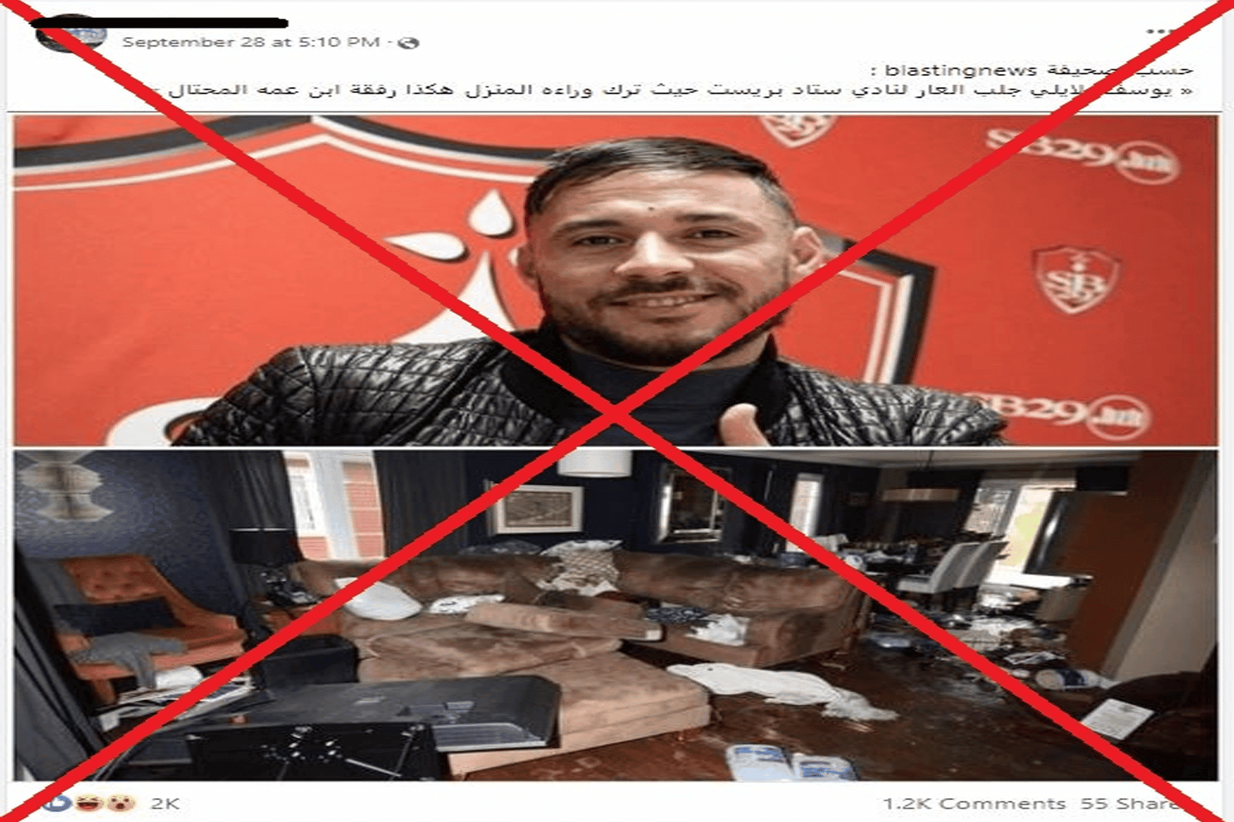 ووفقاً للصورة المتداوَلة، فقد ظهر في الصورة ما يبدو أنّها غرفة جلوس بحالة مزرية جداً، مع إرفاق تعليق عليها يقول: “صحيفة blastingnews يوسف بلايلي جلب العار لنادي ستاد بريست، حيث ترك وراءه المنزل هكذا رفقةَ ابن عمه المحتال، بعد أن قرر نادي بريست الفرنسي فسخَ عقد اللاعب الجزائري، الذي فشل في إثبات نفسه كالعادة في دوري أوروبي، ليتبث بذلك جناح الخضر -للمرة المليون- محدودية احترافه لممارسة كرة القدم”.