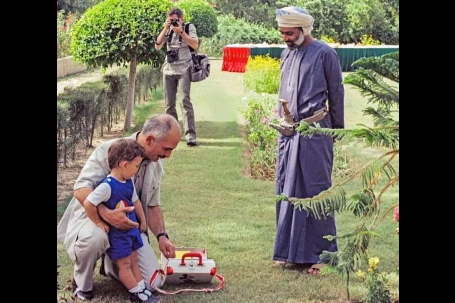 وكان سلطان عمان يلتقي الملك الحسين بن طلال، عندما أهدى نجل الملك عبدالله بن الحسين -الذي كان طفلاً وقتها- هدية أفرحته كثيراً في حديقة القصر.