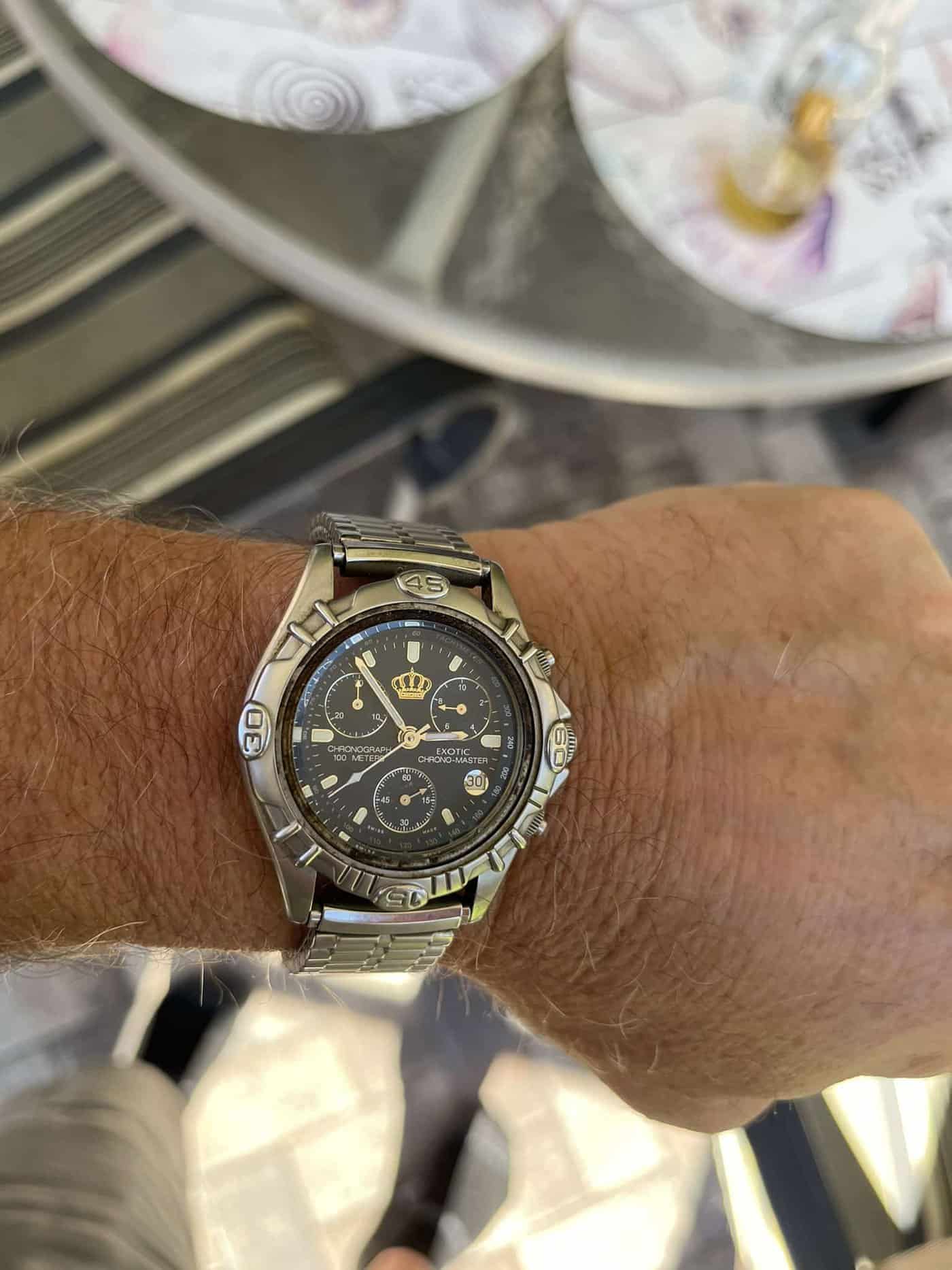 وبالبحث عن ماركة الساعة، تبين أنها من علامة breitling، ولا تتجاوز أسعار بعضها الـ50 دولار.