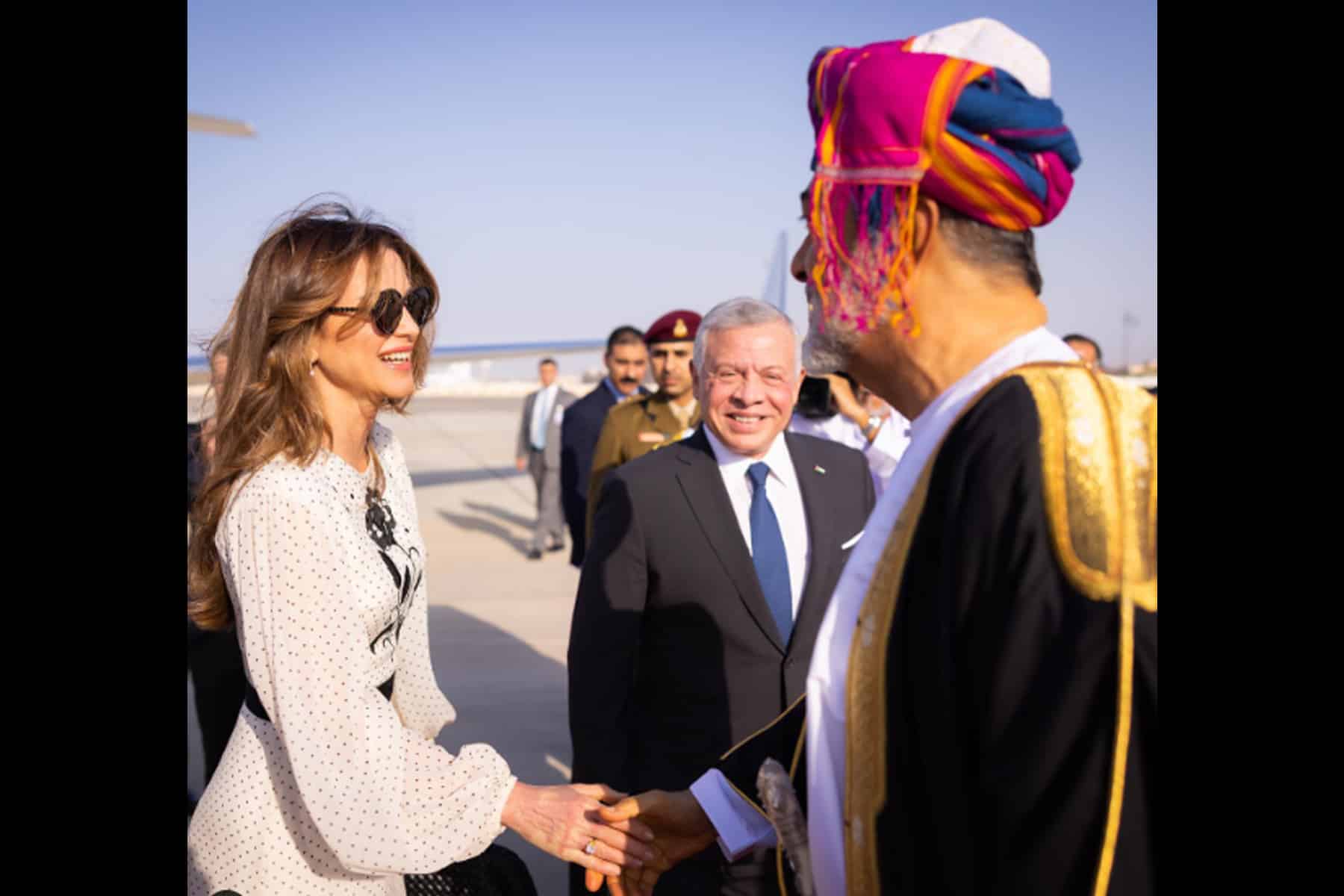 ونشر الديوان الملكي الأردني صوراً من استقبال عاهل الأردن في المطار السلطاني، مشيراً إلى أن السلطان هيثم بن طارق، وزوجته “السيدة الجليلة” عهد بنت عبدالله البوسعيدي، كانا في مقدمة مستقبلي الملك عبدالله الثاني والملكة رانيا، وولي العهد الأردني الأمير الحسين بن عبدالله.