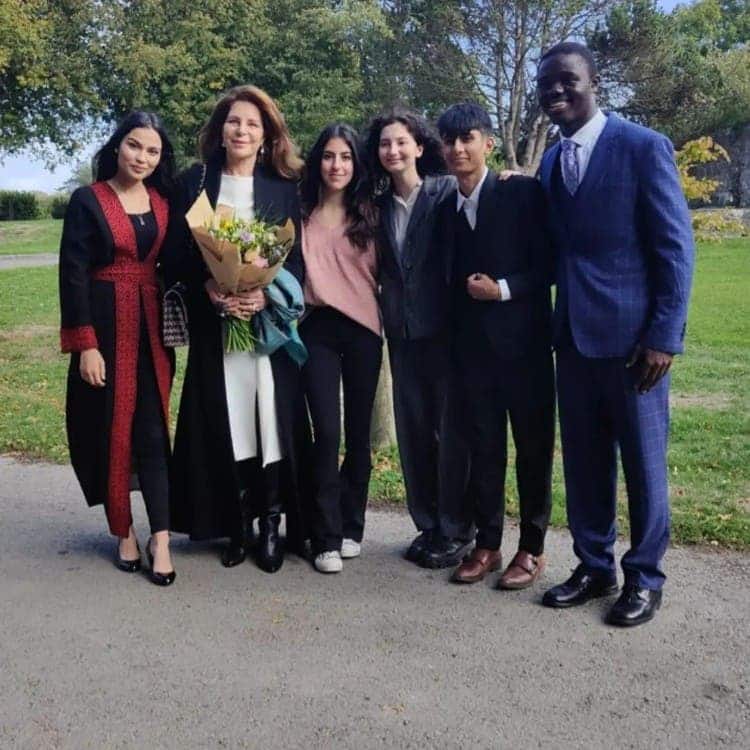 وجاءت مشاركة الملكة نور في الاحتفال، كونَها الرئيسة الحالية لحركة مدرسة العالم المتحد كليّة الأطلنطي-UWC Atlantic.