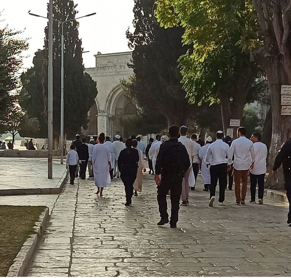 فيما أدى المستوطنون طقوساً تلمودية في ساحات الحرم، لا سيما في منطقة باب الرحمة وقبالة قبة الصخرة، قبل أن يغادروا الساحات من جهة باب السلسلة.