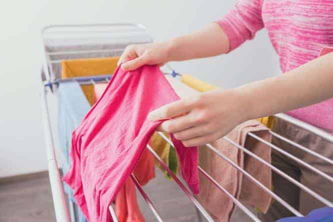 متابعََا “استخدم رف تجفيف وقم بوضعه في غرفة لا تستخدمها دائما، مثل غرفة الغسيل أو غرفة احتياطية أو حتى غرفة طعام، مع التأكد من إبقاء النافذة مفتوحة حتى يدخل الهواء.”