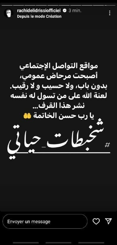 المُقدم الإذاعي، رشيد الإدريسي علّق أيضاً على هذه الحملة، وكتب أن “مواقع التواصل الإجتماعي أصبحت مرحاض عمومي، بدون باب، ولا حسيب ولا رقيب، لعنة الله على من تسول له نفسه نشر هذا القرف، يا رب حسن الخاتمة”.