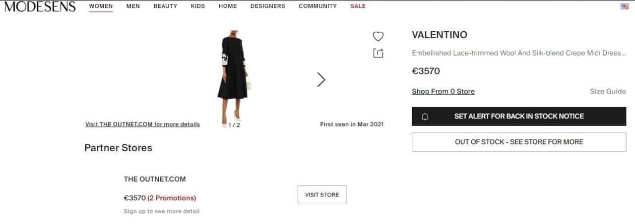 وتبين أن سعر الفستان على موقع فالنتيو، 3570 يورو (3651 دولاراً أمريكياً) بعد الخصم.