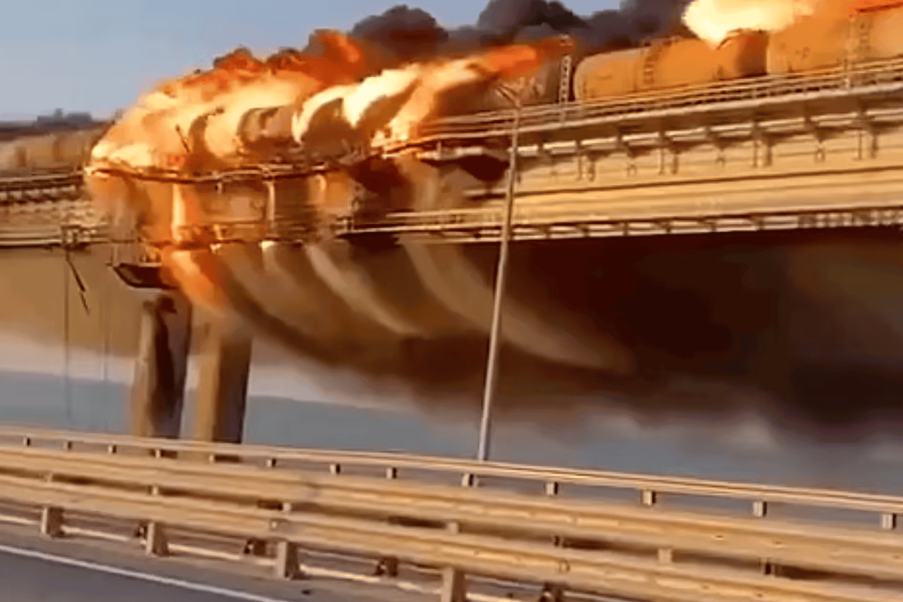 وانهار جزء من الجسر في البحر، واشتعلت النيران في قطار يزود القوات الروسية، على الرغم من المزاعم الروسية بأن لديها إمدادات كافية تكفي لأسبوعين.