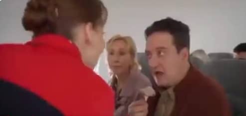 وتطلب المضيفة بعدها -في مشهد آخر- من الروسي الانتقال إلى الصفوف الأمامية، بحجة أن خلفه أشخاصاً اختاروا عدم وجود أطفال في رحلتهم.