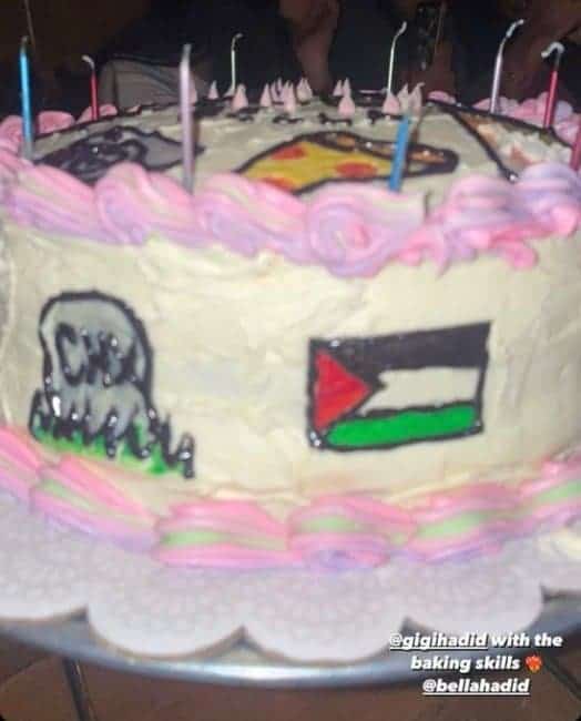واختارت شقيقتها عارضة الأزياء، جيجي حديد، أن تحضر لها كعكة عيد الميلاد وعليها علم فلسطين.