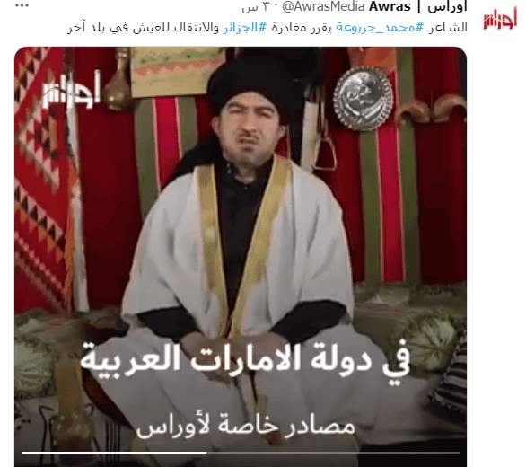 الشاعر #محمد_جربوعة يقرر مغادرة #الجزائر والانتقال للعيش في بلد آخر pic.twitter.com/l9JwX14rt3