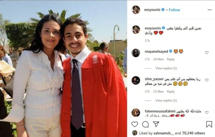 وأكد معظم متابعي العيدان أنها المرة الأولى التي يرون فيها أبناء إسعاد يونس، التي تزوجت من الممثل نبيل الهجرسي، وأنجبت منه ابنتها نورهان. ثم تزوجت بعد ذلك من رجل الأعمال الأردني علاء الخواجة، الذي يحمل الجنسية البريطانية، وأنجبت منه ابنها عمر، الذي يعيش في لندن بعد حصوله على درجة الماجستير، ومتزوج من تالا مراد.