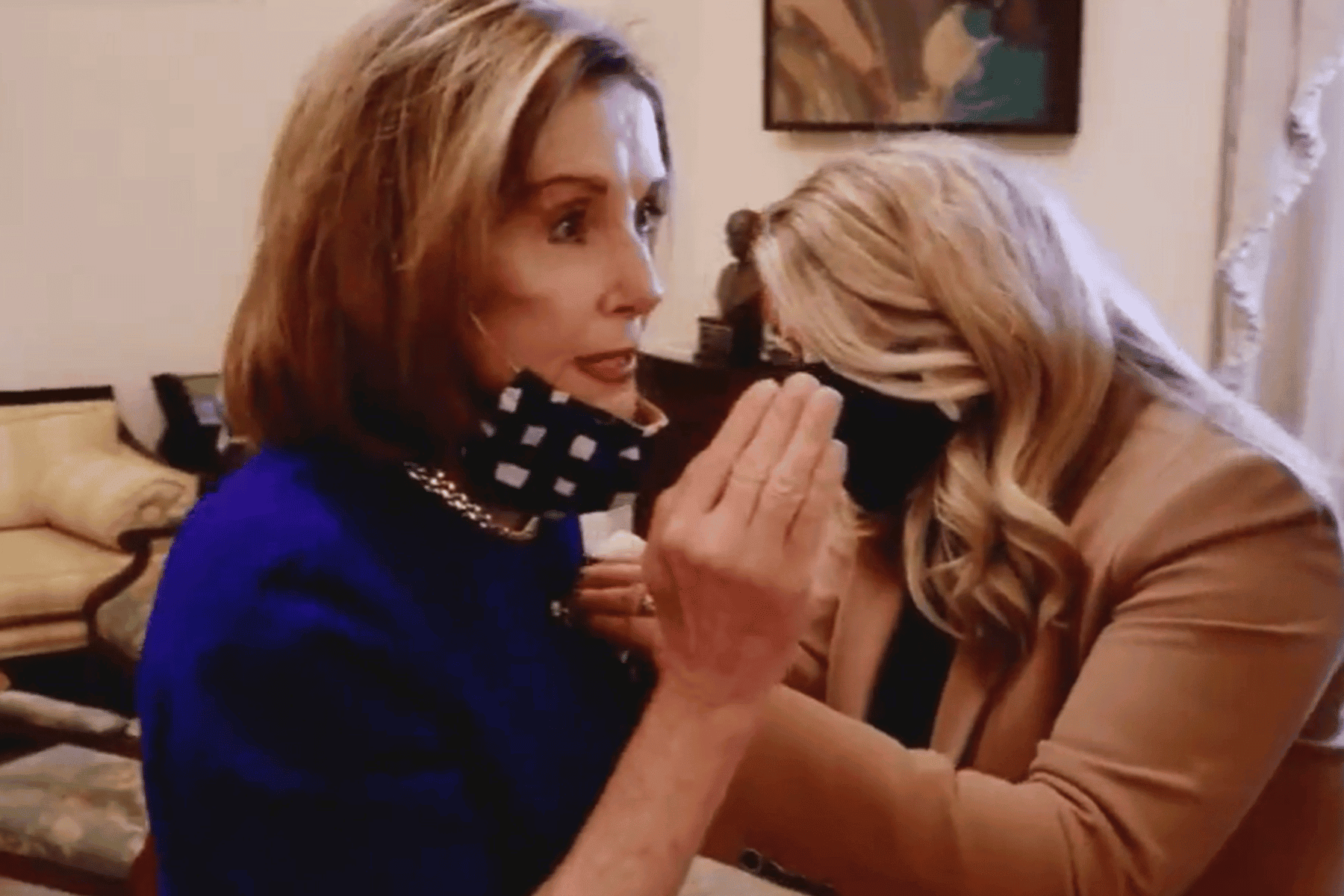 وكان مقطع الفيديو قد التقطته المخرجة ألكسندرا بيلوسي، ابنة رئيسة مجلس النواب، لوالدتها وهي تتكلم مع موظفيها، بينما كان ترامب يتحدث في مسيرة إليبس، التي سبقت أعمال الشغب، آنذاك.