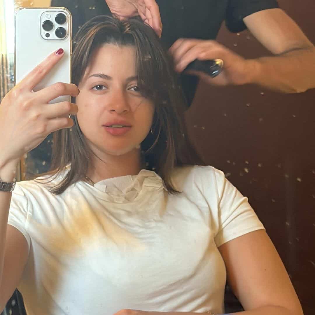 ونشرت منى فاورق صورة لها عبر حسابها على “إنستجرام”، وهي داخل أحد مراكز التجميل، ويقوم رجل بتصفيف شعرها.