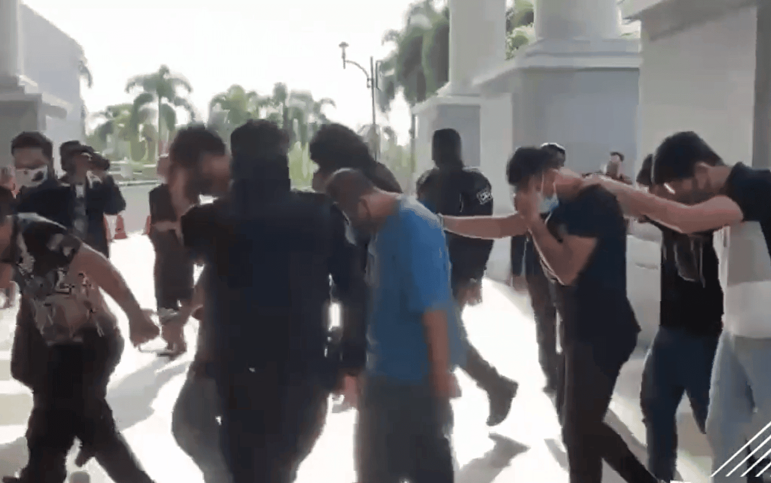 وأظهر مقطع الفيديو اقتياد رجال مقيدين ومعصوبي الأعين إلى المحكمة، وسط تقارير إعلامية عن عملية خطف “فاشلة” أدت إلى أكثر من عشرة اعتقالات.