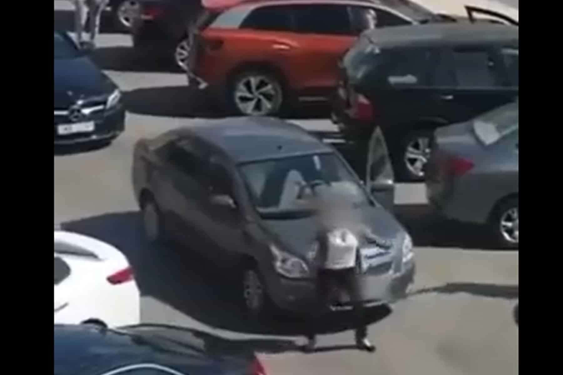 وكانت الفتاة التي لم تُكشف هويتها حتى الآن، تتمايل وتقوم بحركات راقصة مثيرة أمام سيارتها، بينما تقف السيارات وراءها.