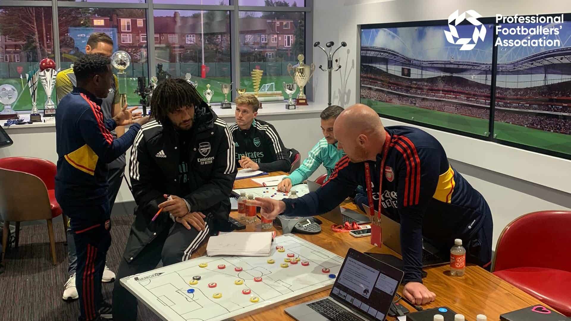Granit Xhaka & Mohamed Elneny taking part in their UEFA B coaching course last night. Cedric Soares & Rob Holding were also involved in the course. 👏 [@PFA] #afc pic.twitter.com/oJ383b000J