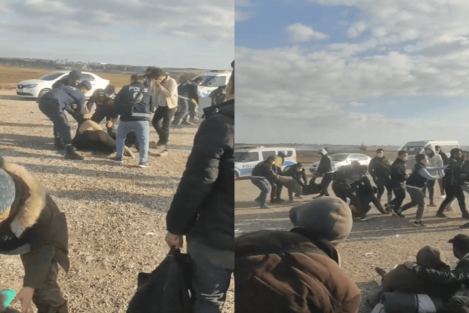 مقطع فيديو تبلغ مدته 35 ثانية، أظهر اعتداءً شديد الوحشية، من قبل عناصر أمنية تركية على أسر سورية، في منطقة يُرجّح أنها حدودية.