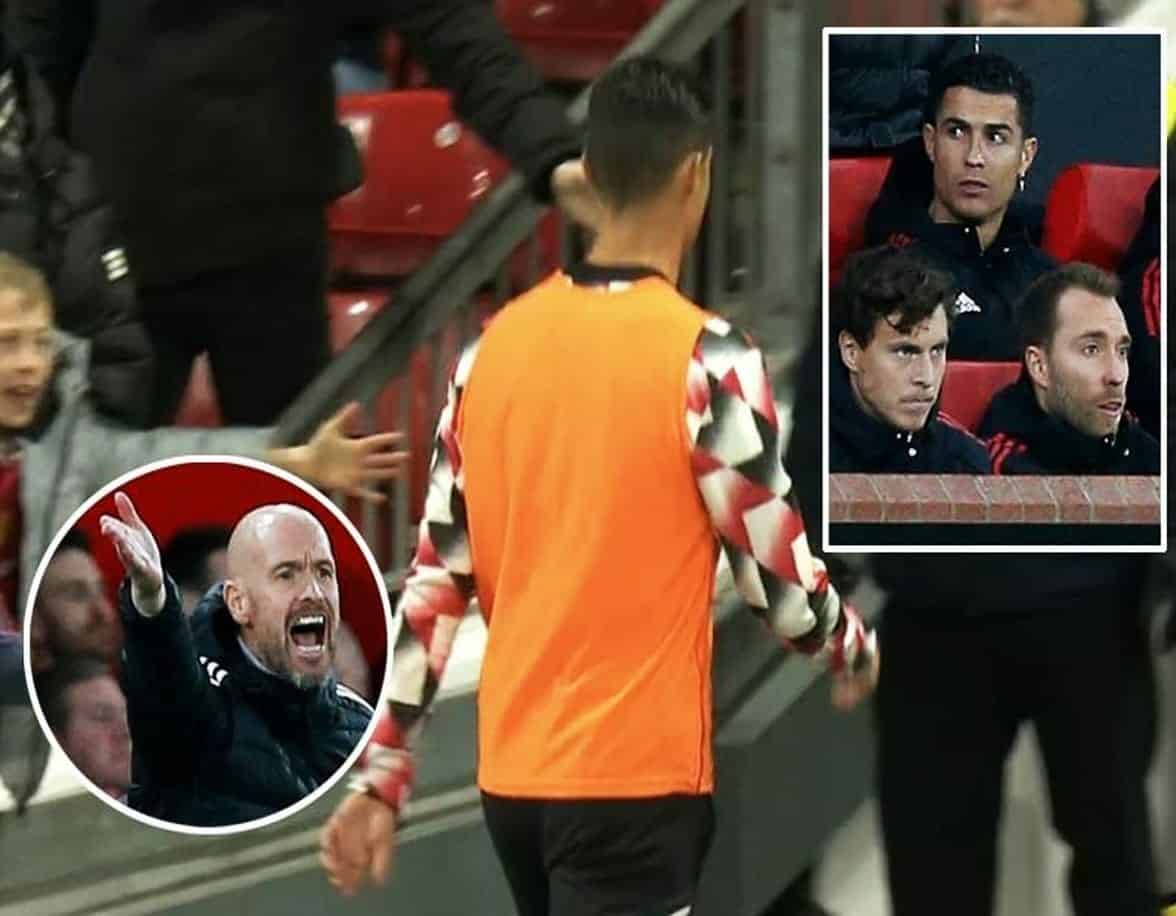 وكان المدرب تين هاج، قد طلب من البرتغالي رونالدو القيام بعمليات الإحماء عند الدقيقة ال40. ويزيد مع مجريات أحداث المباراة، إلا أن المدرب لم يشرك اللاعب، ليقرر بعدها الدون الخروج من من أرضية الملعب غاضباً قبل نهاية اللقاء.