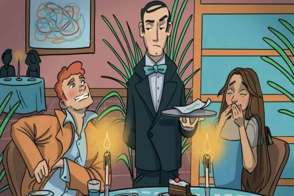 في هذا الوهم البصري، رجل وسيدة يقضيان موعدهما في المطعم.
