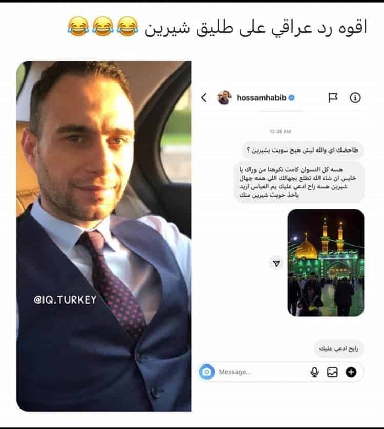 كما قام شاب عراقي بإرسال صورته إلى حسام حبيب، وهو متوجّه إلى المسجد ليدعوَ عليه.