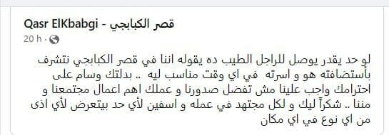 وأصبحت الحادثة قضيةَ رأي عام، علّق عليها العديد من المشاهير، وقامت بعض المطاعم بتوجيه دعوة للعامل للتوجّه إليهم، من ضمنها مطعم “قصر الكبابجي”، الذي كتب عبر حسابه: “لو حد يقدر يوصل للراجل الطيب ده يقوله اننا في قصر الكبابجي نتشرف بأستضافته هو و اسرته في اي وقت مناسب ليه .. بدلتك وسام على صدورنا و عملك اهم اعمال مجتمعنا و احترامك واجب علينا مش تفضل مننا .. شكراً ليك و لكل مجتهد في عمله و اسفين لأي حد بيتعرض لأي اذى من اي نوع في اي مكان”.