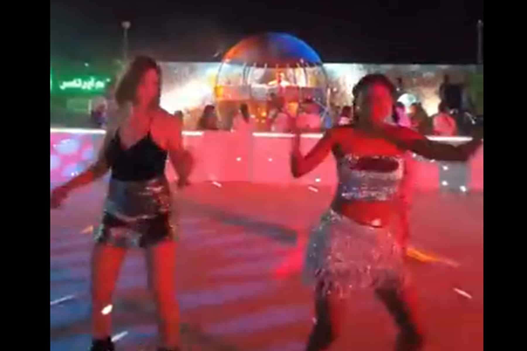 وأظهر المقطع راقصتين بلباس فاضح، وهما يرقصان أمام عشرات الحضور.