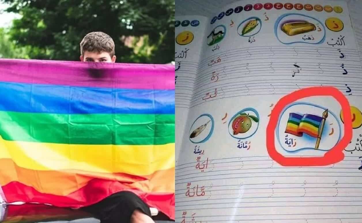 ووفقاً للصور المتداوَلة التي رصدتها “وطن“، فقد شمل تدريب على حرف “الراء” وضعَ صورة علم المثليين، للتدليل على كلمة “راية”.