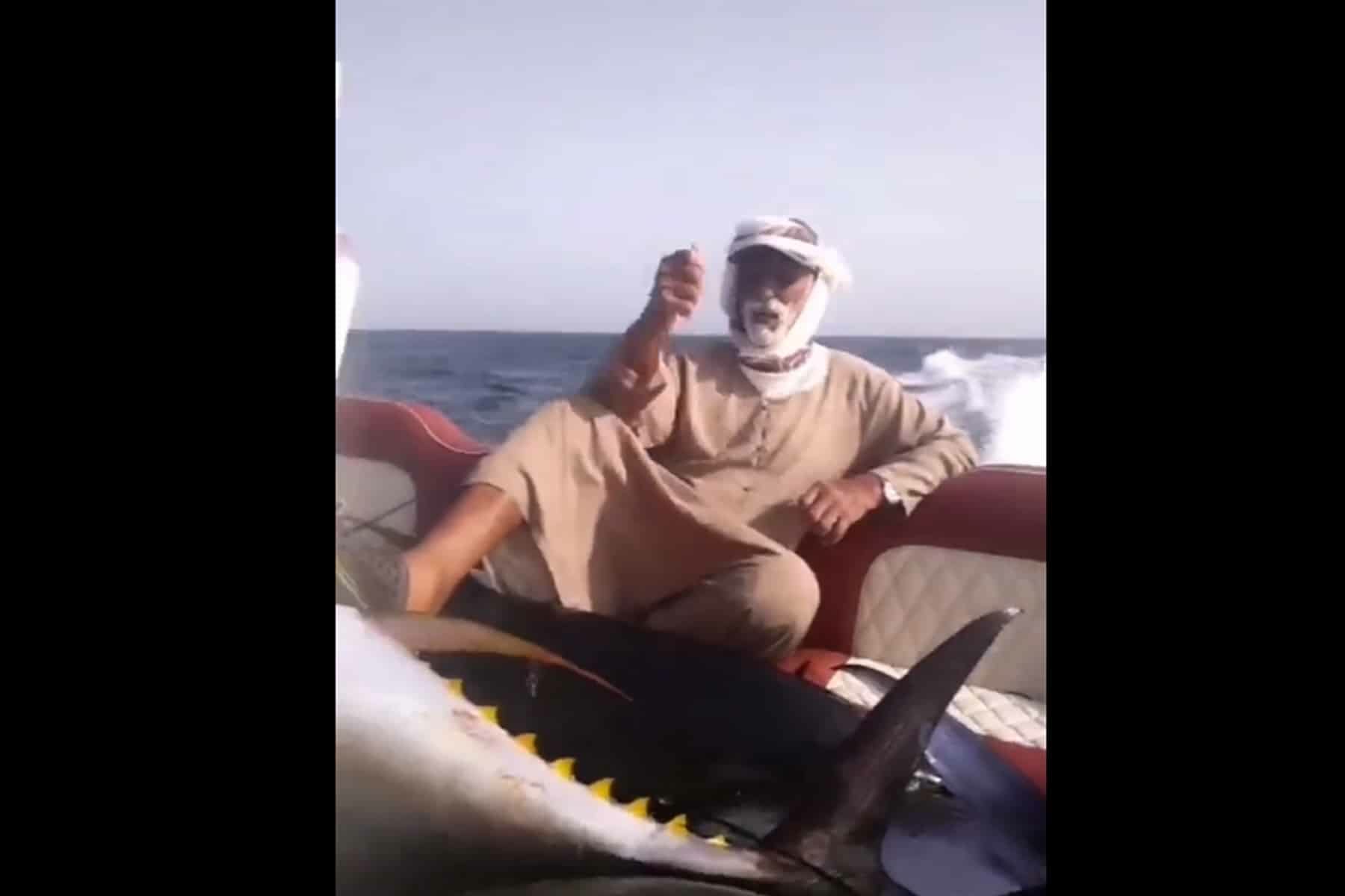 وظهر خاطر بن ناصر -بحسب المقطع الذي رصدته (وطن)- على متن قارب حديث، وهو يقوم بالصيد.