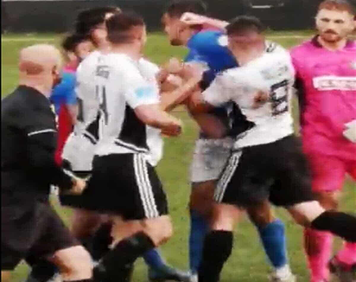وطن- حالة من الفوضى شهدتها مباراة ديربي شمال ويلز لكرة القدم بين رايل وبانغور، بعد تحول المباراة إلى ساحة قتال للشوارع بين اللاعبين من كلا الفريقين، داخل أرضية ملعب المباراة.