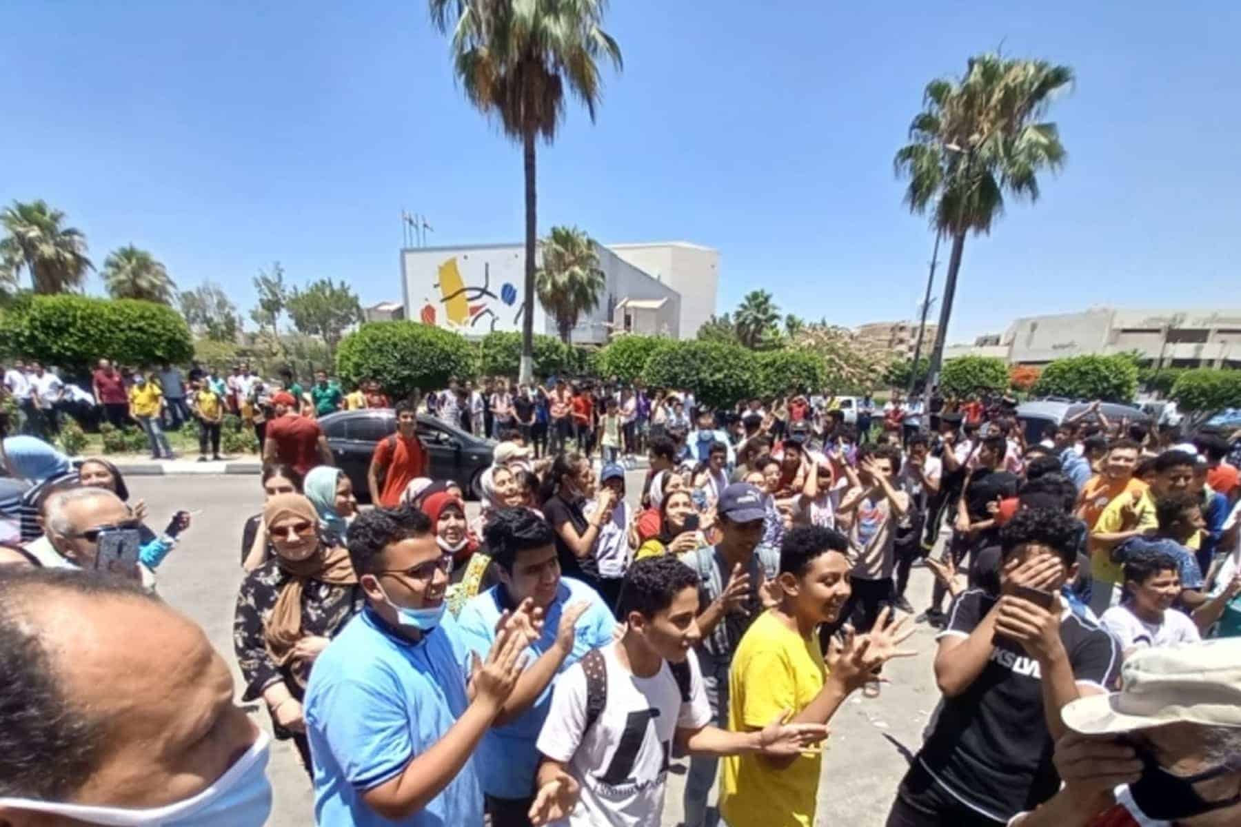 وشوهد عشرات التلاميذ، وهم يهتفون: “عاوزين مدرسين”.