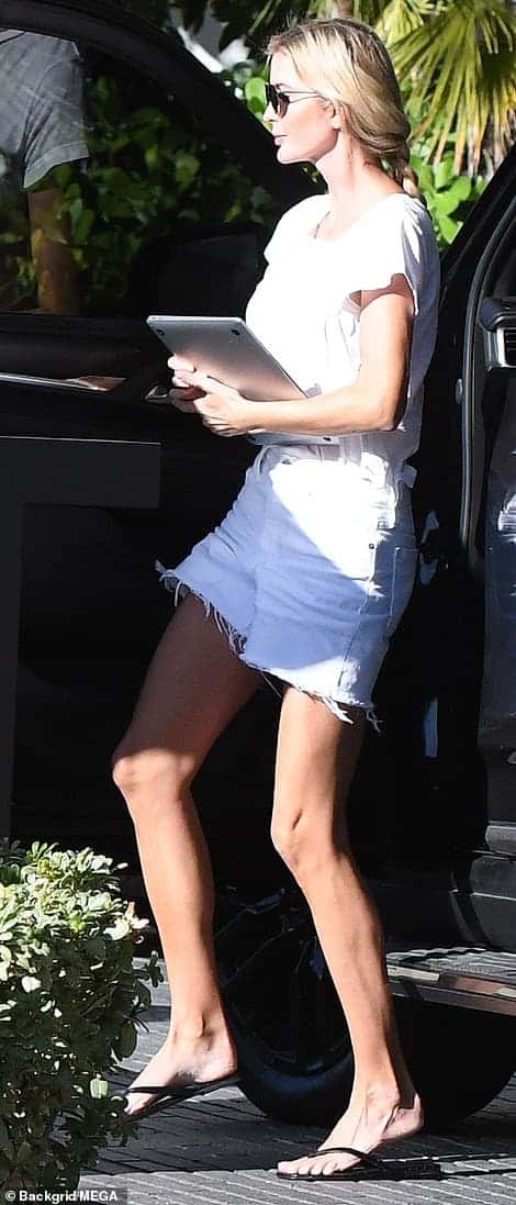 استغلت إيفانكا طقس فلوريدا الدافئ، وارتدت شورت أبيض، نسّقته مع تيشرت أبيض أيضاً.