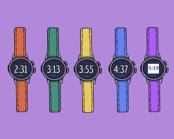 الساعة الأولى تعرضُ الوقت 2:31، ثم الثانية 3:13، والثالثة 3:55، والرابعة 4:37، وفقاً لموقع “jagranjosh“.