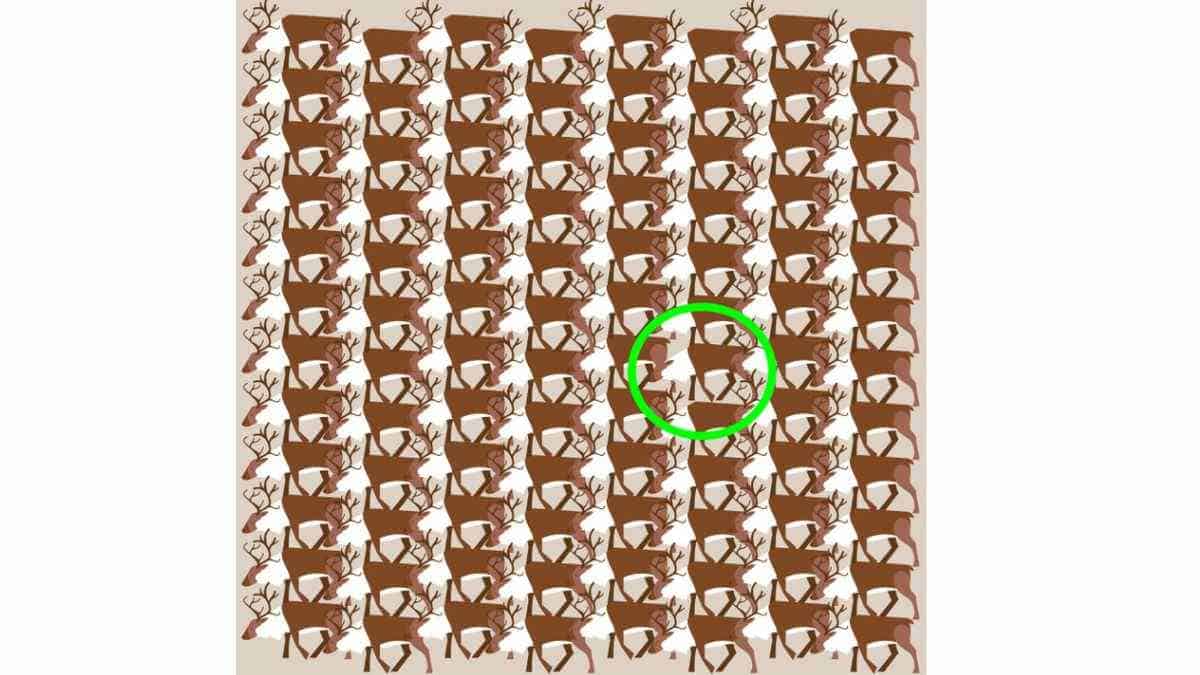 عليك أن تكتشف الغزلان بدون قرون في الحشد. على الرغم من أنّ الإجابة أمامك مباشرة، فإن استخدام صور متطابقة وخلفية ذات نغمة مماثلة، تجعل المهمة مرهقة.