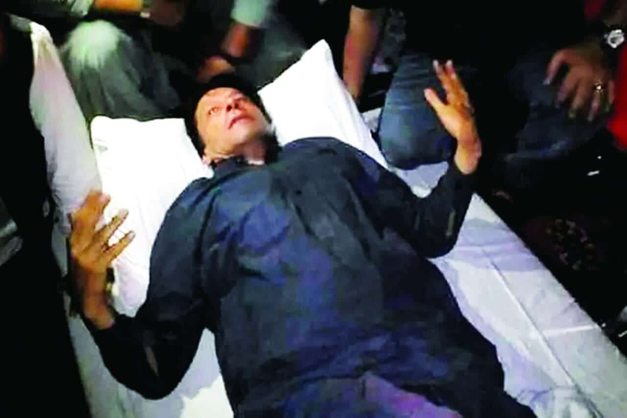 وأظهرت صورة نشرتها وسائل الإعلام الباكستانية عمران يركب سيارة مع أنصاره ويسمع صوت إطلاق نار.