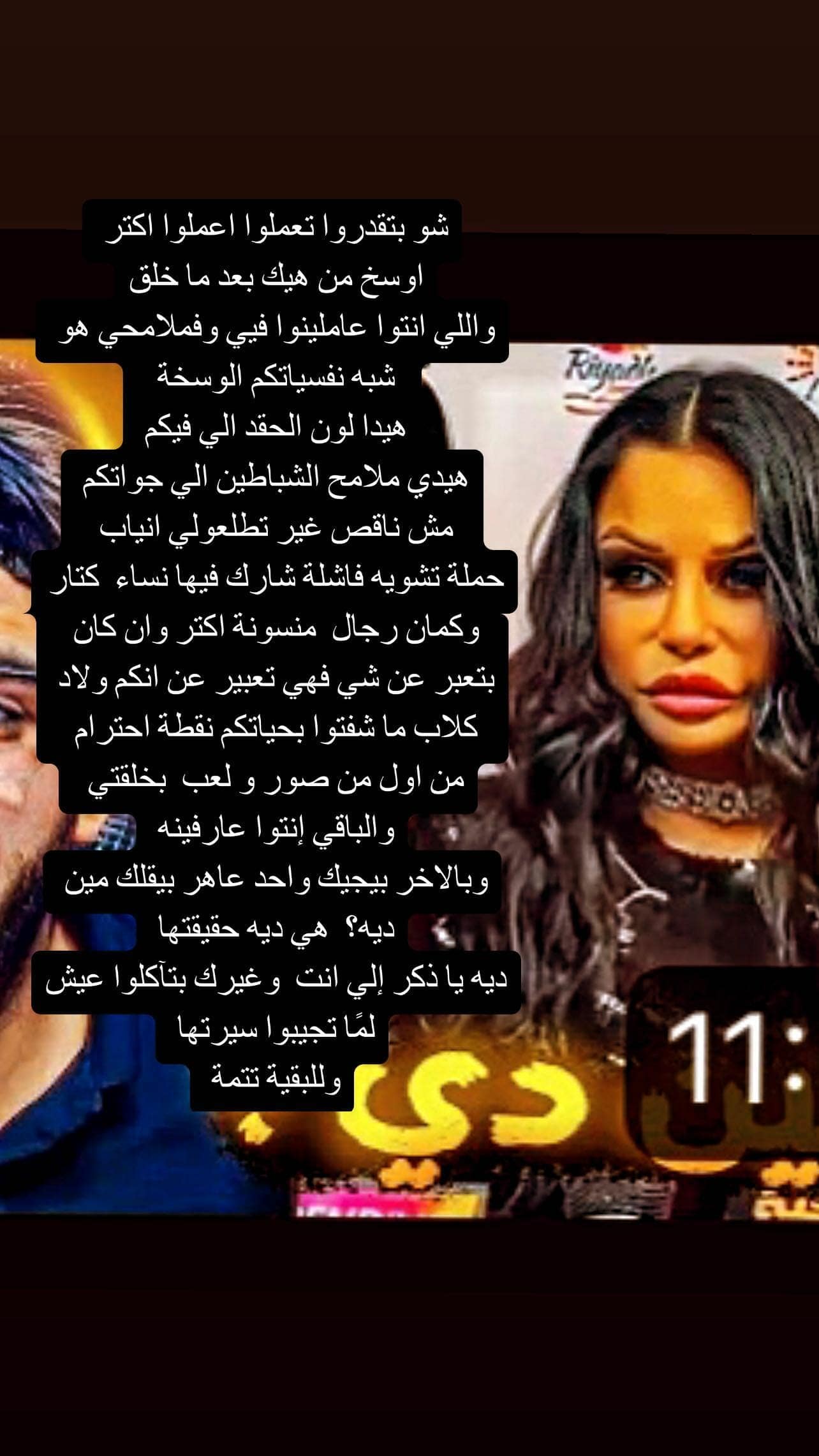 وتابعت: “اللي انتوا عاملينه فيّ وفي ملامحي هو شبه نفسياتكم. هيدا لون الحقد اللي فيكم، هيدي ملامح الشياطين الي جواتكم مش ناقص غير تطلعولي أنياب، حملة تشويه فاشلة”.