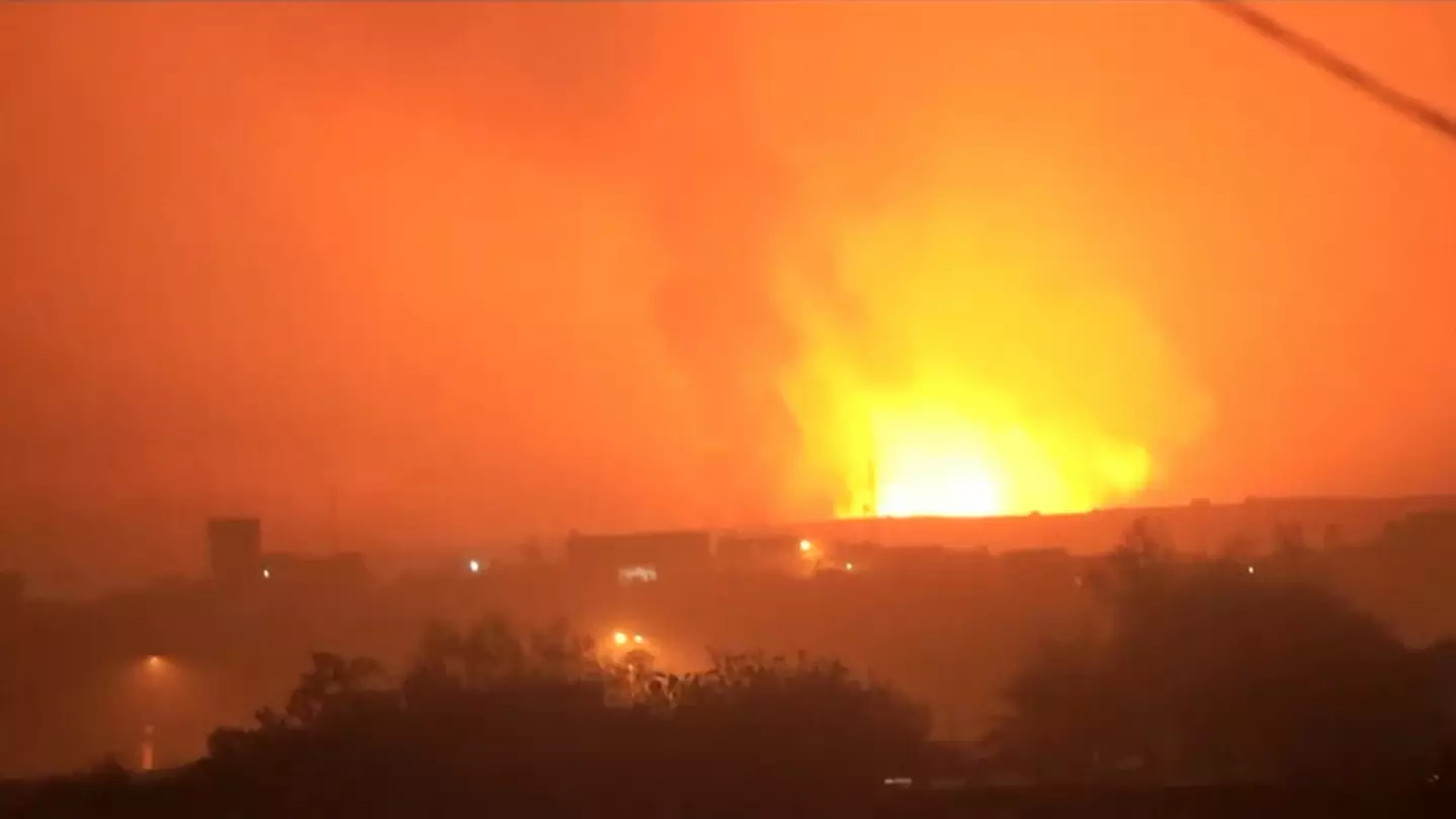مقطع فيديو اخر للانفجارات في مخازن المنطقة العسكرية الثالثة ويثبت ان الانفجار حدث من داخل المخزن وليس استهداف صاروخي او طيران مسير . pic.twitter.com/D6O6HT73W8