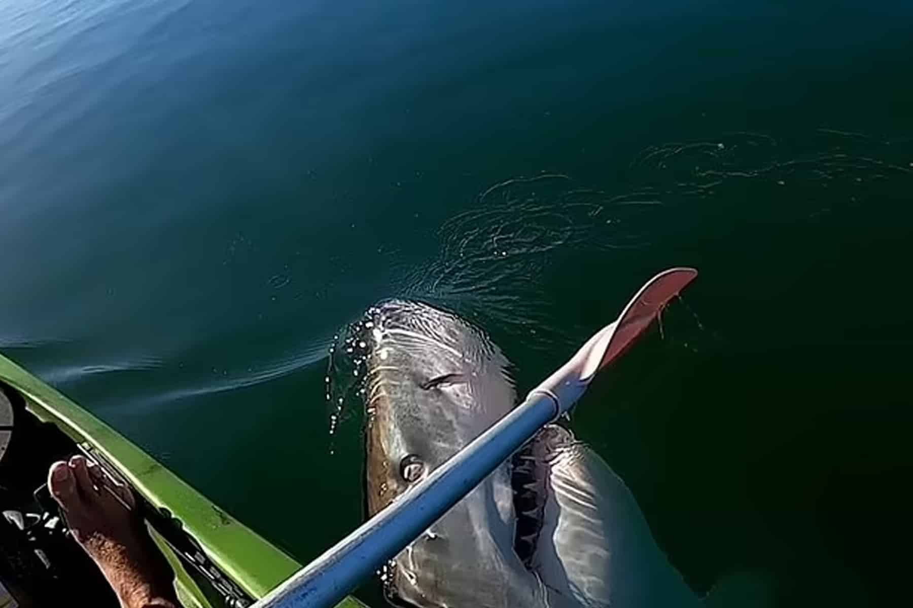 وبحسب المقطع الذي حاز ملايين المشاهدات، يظهر القرش فجأة وهو يفتح فمه، ويحاول أنْ يعضّ المجداف الخاص بالسيد جورن، بينما يحاول الصياد التجديف بعيدًا.