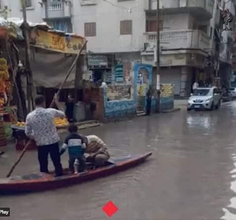 أهالي #العجمي في #الإسكندرية ينتقلون في الشوارع بمراكب صيد بعد غرقها بمياه الأمطار pic.twitter.com/eokO2SZ4up