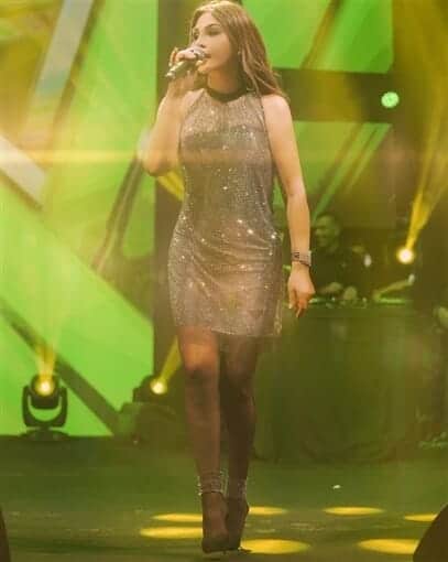 وجاء تصميم الفستان وخامته مشابهين لحد كبير لما ظهرت به النجمة اللبنانية إليسا في حفل رأس سنة 2021.