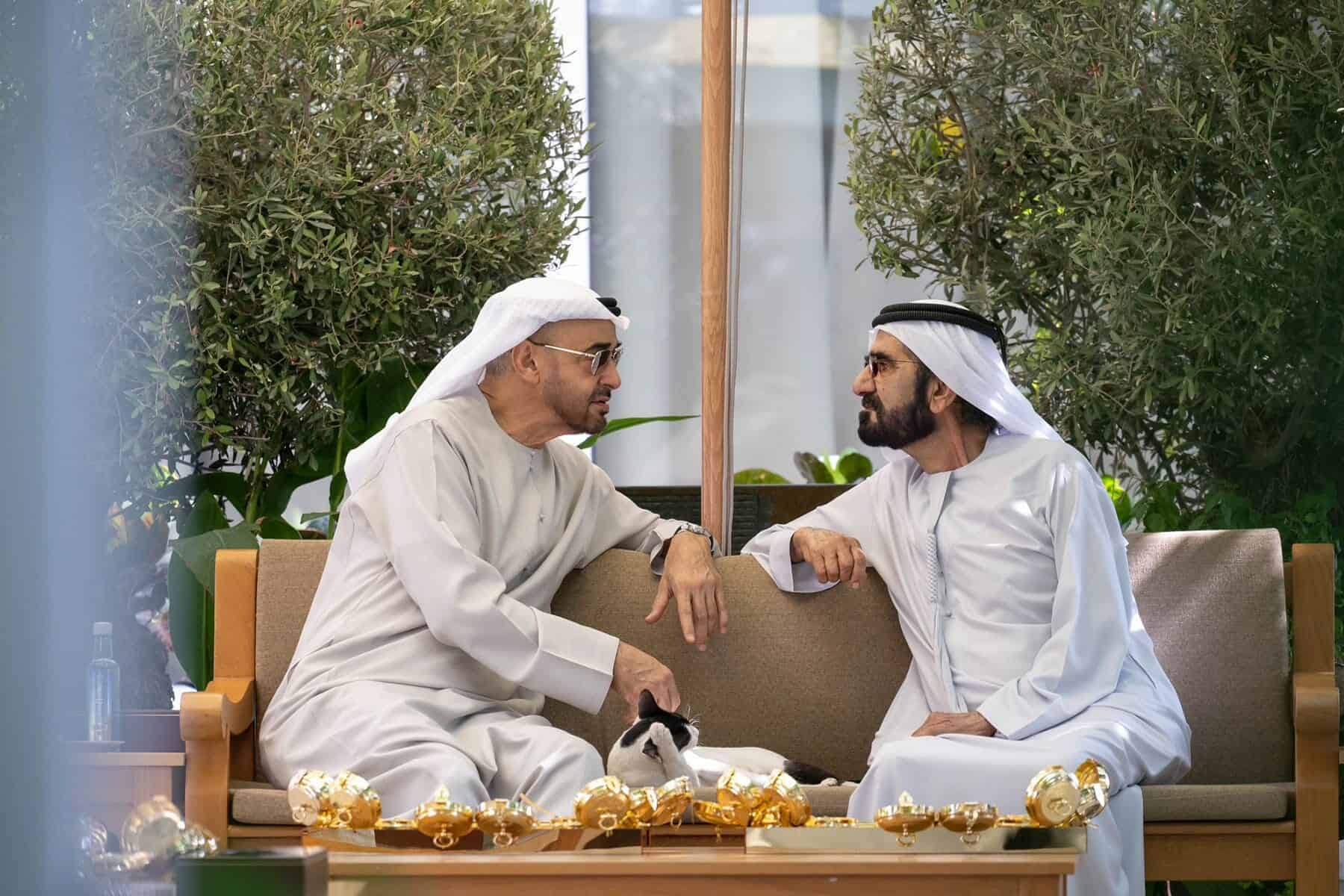 قطة تجلس برفقة “ابن زايد” و”ابن راشد”