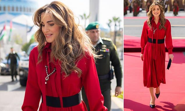 وحضرت ملكة الأردن (52 عامًا)، البرلمانَ اليوم للاستماع لكلمة الملك عبد الله الثاني، وصعدت إلى المبنى الحكومي بفستان أحمر فاخر، وحقيبة يد تم تصميمها على طلبها.