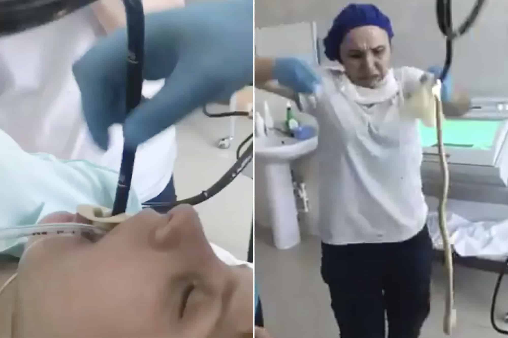 وبدا الأطباء مرعوبين، وهم ينتشلون الأفعى من حلق المرأة.