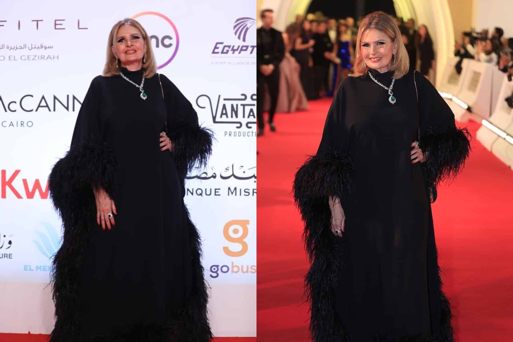 وكانت يسرا قد تألّقت خلال مهرجان القاهرة السينمائي العامَ الماضي، بفستان أسود بصيحة “الأوف شولدر”، بتطريزات لامعة باللون الفضي، ونسّقت معه كلاش باللون الأسود المطرز أيضاً.
