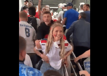ووفقاً للفيديو المتداوَل الذي رصدته “وطن“، وتمتنع عن نشره حرصاً على مشاعر متابعيها، فإنّه وفي أعقاب المباراة وأثناء خروج المشجعين من الاستاد عبر الممرات والسلالم المتحركة، بادرت المشجعة الإنجليزية بمداعبة الكاميرا والحاضرين، بالإشارة إلى خلع قميصها.