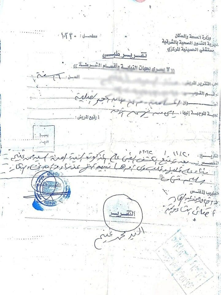 وكما يظهر في صورة التقرير الطبي المتداوَل، تبيّنَ أن الفتاة عذراء، وأن غشاء بكارتها سليم تماماً.